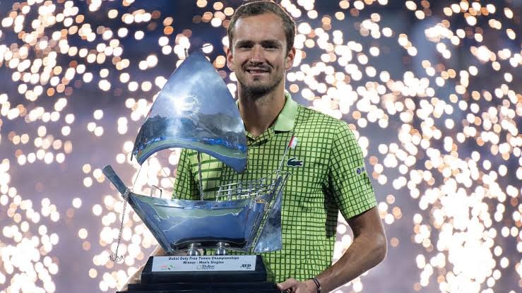 Daniil Medvedev meraih gelar Dubai Duty Free Tennis Championships, Sabtu, setelah Tallon Griekspoor mundur menjelang final karena cedera hamstring kiri saat memenangi babak semifinal melawan Andrey Rublev, Jumat (27/26). 02/03/2026